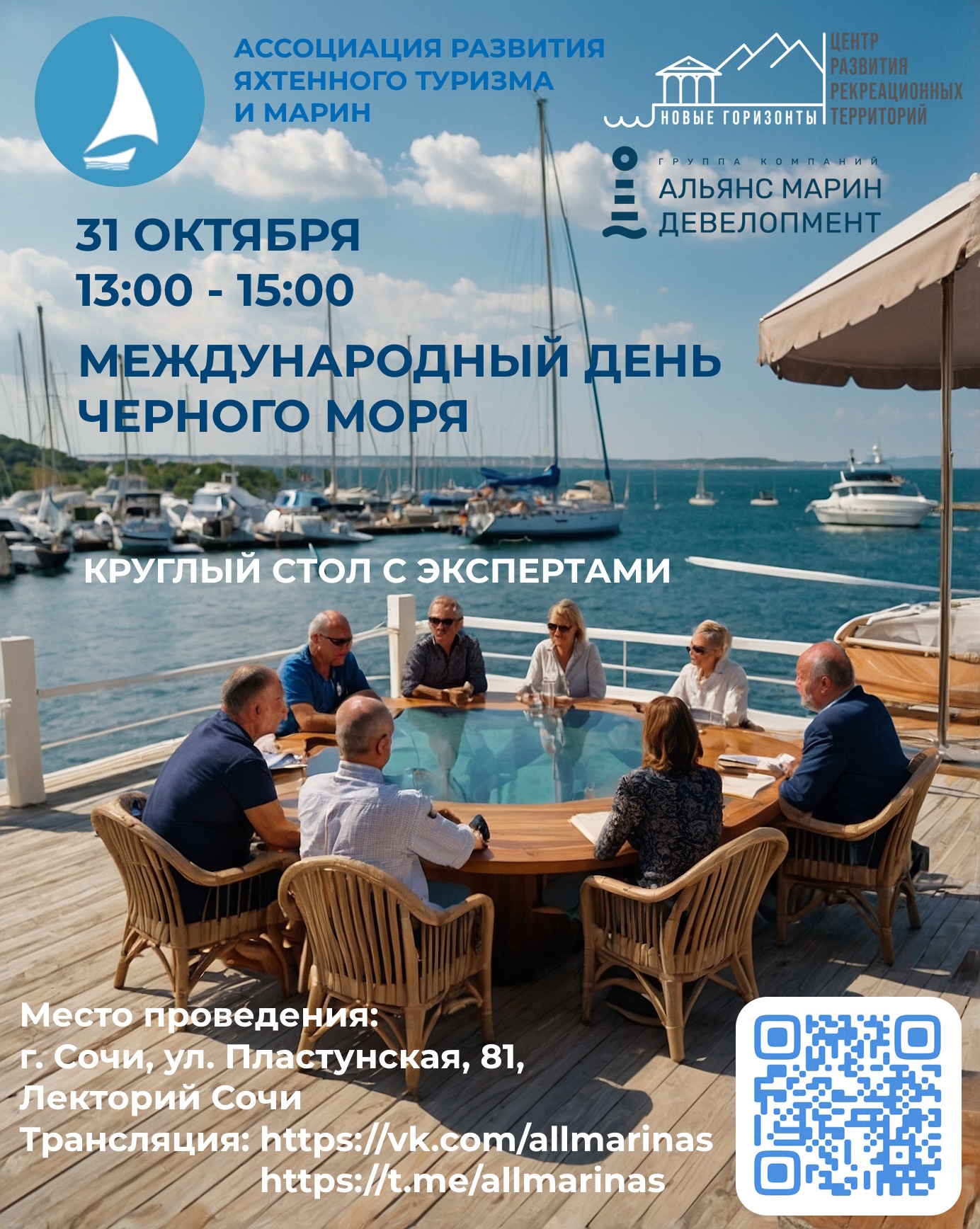 Ассоциация развития яхтенного туризма и марин приглашает вас принять участие в круглом столе, посвященном Международному Дню Чёрного моря.